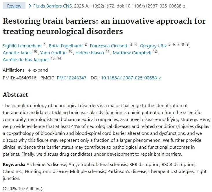 The complex etiology of neurological disorders is a major challenge to the identification of therapeutic candidates. Tackling brain vascular dysfunction is gaining attention from the scientific community, neurologists and pharmaceutical companies, as a novel disease-modifying strategy. Here, we provide evidence that at least 41% of neurological diseases and related conditions/injuries display a co-pathology of blood-brain and blood-spinal cord barrier alterations and dysfunctions, and we discuss why this figure may represent only a fraction of a larger phenomenon. We further provide clinical evidence that barrier status may contribute to pathological and functional outcomes in patients. Finally, we discuss drug candidates under development to repair brain barriers.
